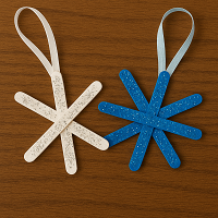 Lim sammen ispinner eller sugerør i stjerneform, og pynt med maling og glitter. Fine å henge i vinduet.