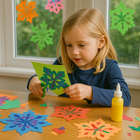 Det fine med snøkrystaller i papir er at aktiviteten kan varieres og tilpasses. Små barn kan starte med få og store klipp, mens eldre barn gjerne eksperimenterer med intrikate detaljer og egne mønstre. Etter hvert kan dere også prøve med annet papir, farger, glitter eller kanskje flette flere snøkrystaller sammen til små kunstverk. Barn får trene på både konsentrasjon og nøyaktighet – og det hele skjer gjennom lek og skaperglede.