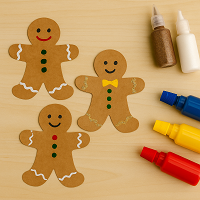 Klipp ut pepperkakemennesker i brun kartong. La barna dekorere med tusj, maling eller glitterlim.