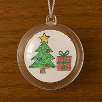La barna tegne små julebilder, klipp dem i sirkel og legg i gjennomsiktige plastkuler (fås på hobbybutikk). Fint til treet.