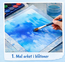 Mal arket i blåtoner – bruk rikelig med vann slik at malingen er godt våt. -