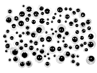 Øyner av plast i assorterte størrelser med bevegelige pupiller. Flat bakside uten lim.